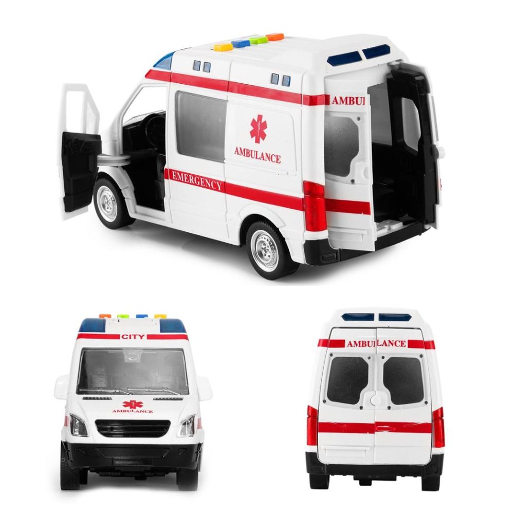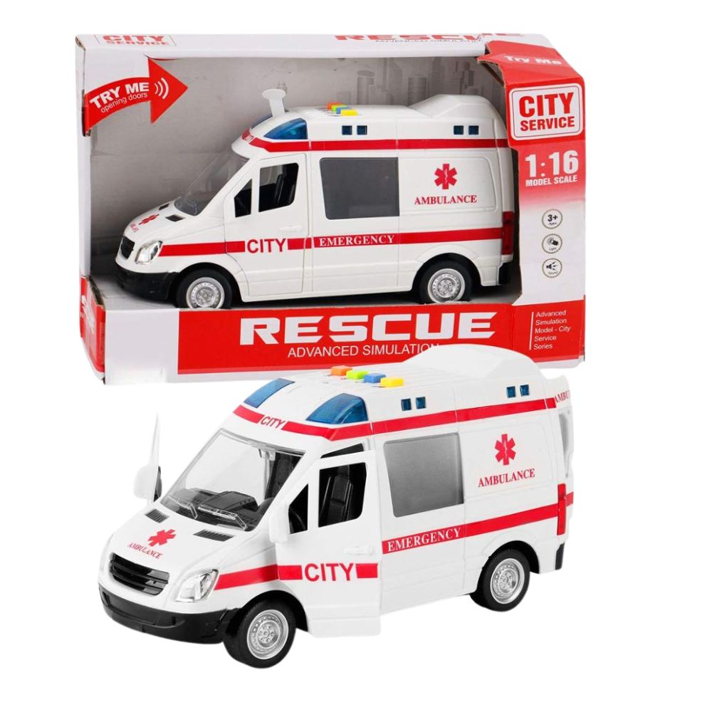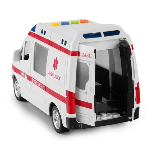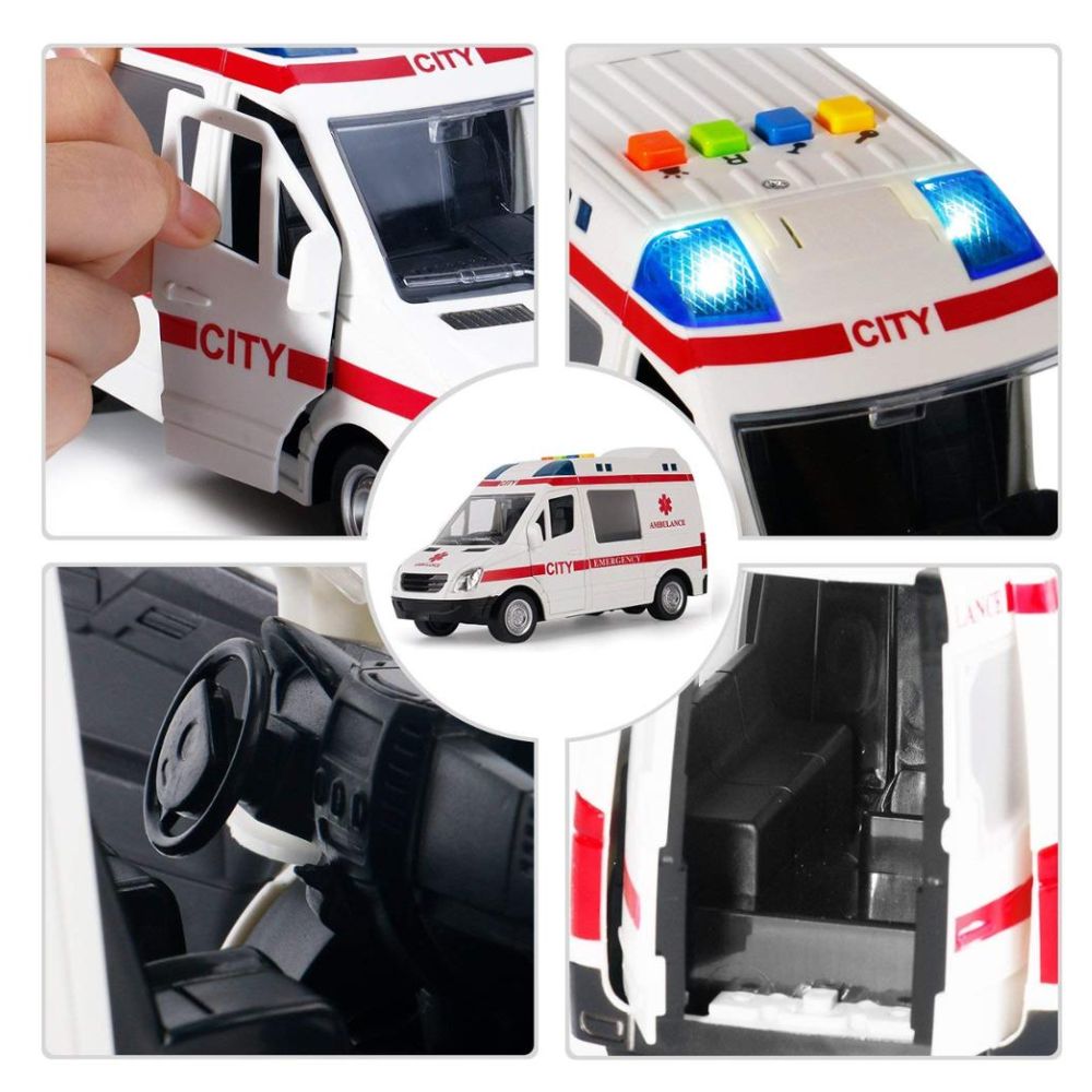 אמבולנס הצלה אינטראקטיבי – דגם עם אורות, 4 צלילי חילוץ ריאליסטיים ודלתות נפתחות