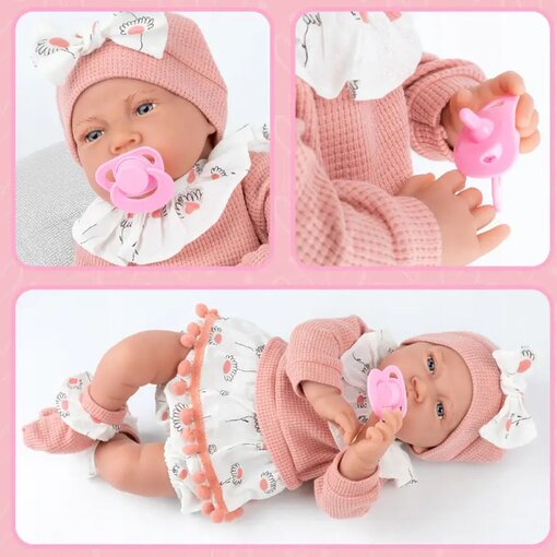 בובת תינוק 40 ס”מ בסט ורוד אופנתי – גוף רך עם פומפונים ופפיון