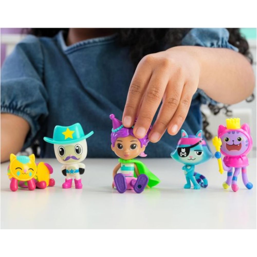 הסט כולל את גבי וחמשת החתלתולים האהובים מהסדרה: פנדי בוק, דיג’יי קטניפ, קט-רץ, כר-תולית וקיטי, כולם לבושים לחגיגה.