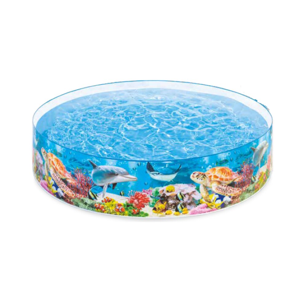 בריכת INTEX 58472 עם דפנות קשיחות בקוטר 244 ס”מ, בעיצוב דגי ים צבעוניים.