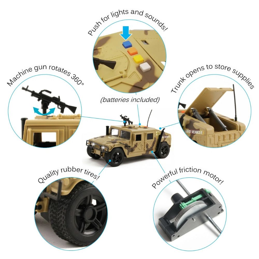 עם עיצוב ריאליסטי של הסוואת מדבר, גלגלים חזקים ואפקטים מגניבים, כל חדר ילדים הופך תוך רגע לבסיס צבאי מרתק.