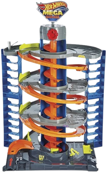 עם 4 קומות של התרגשות, מקום לאוסף ענק ומעלית ספירלה מטורפת, המוסך הזה הוא הלב הפועם של כל עיר Hot Wheels!