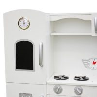 מטבח עץ צעצוע מדהים בצבע לבן לילדים כולל אביזרי מטבח , תאורה בארונות וצלילים בתנור ובקולט אדים