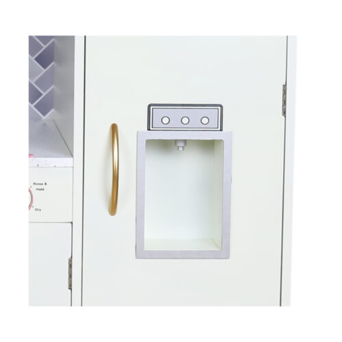 מטבח לילדים מעץ בצבע שמנת בצבעים מודרניים דגם אורי כולל מדיח כלים, תנור, מיקרוגל, כיור עם ברז מוזהב,כיריים חשמליים, מקרר עם בר מים