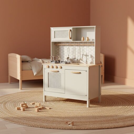 הכירו את מטבח הרטרו המושלם למשחק דמיון! עשוי מעץ איכותי, מעוצב בסגנון וינטג’ ומתאים לילדים שאוהבים “לבשל כמו גדולים”.