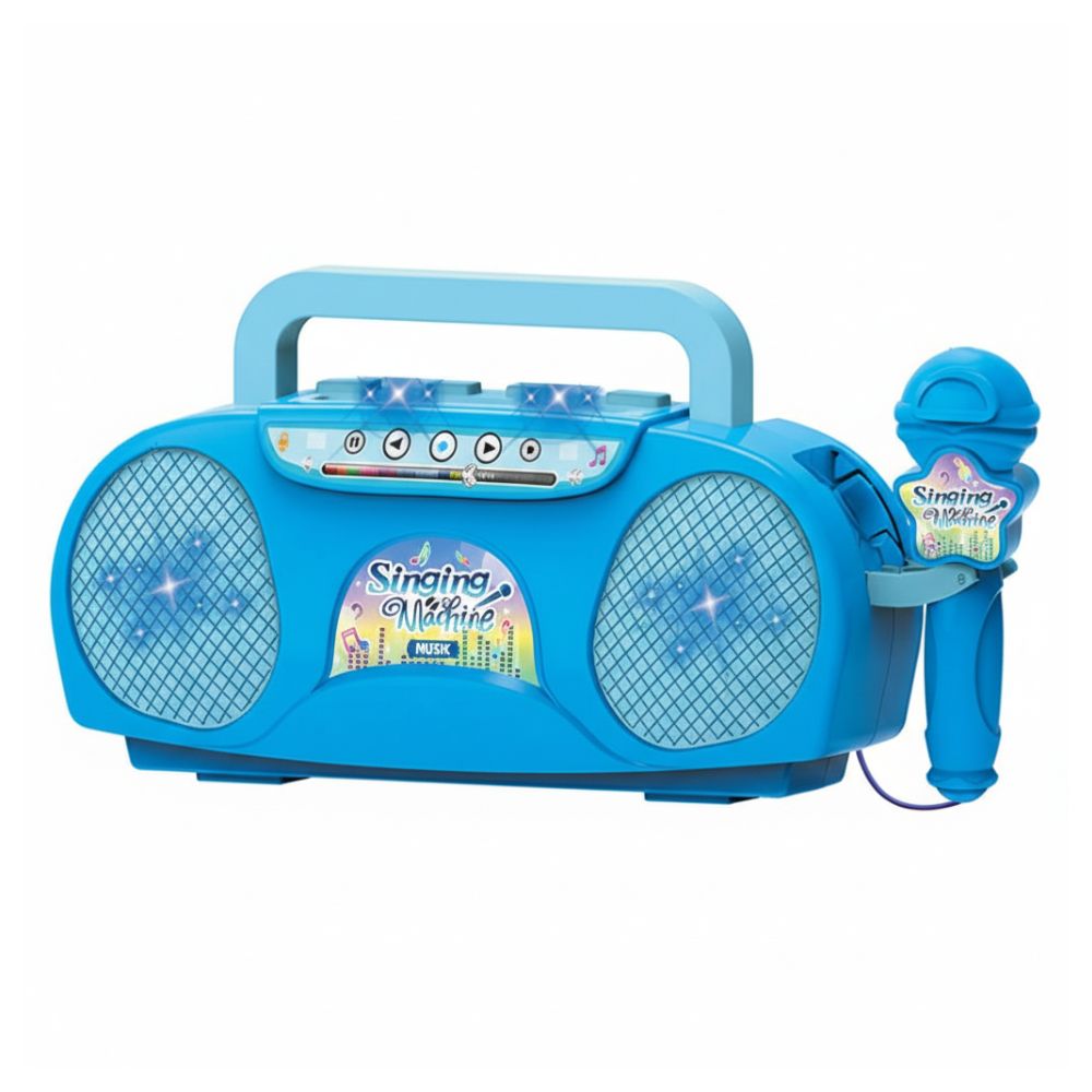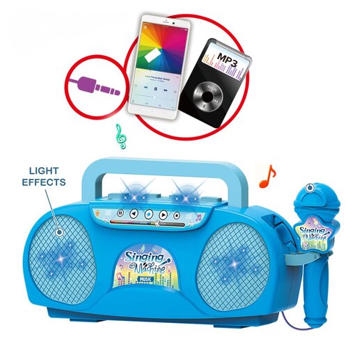 מכונת קריוקי לילדים הכוללת מיקרופון ורמקול – בצבע כחול
