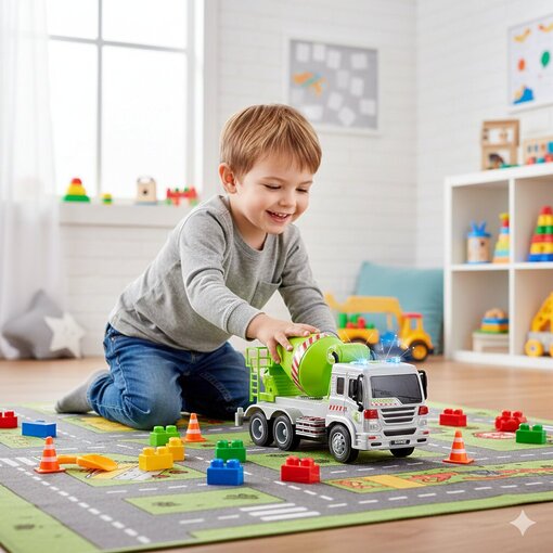 🏗️ משאית מערבל בטון גדולה: עם אורות, צלילים וגלגלי גומי (1:16)