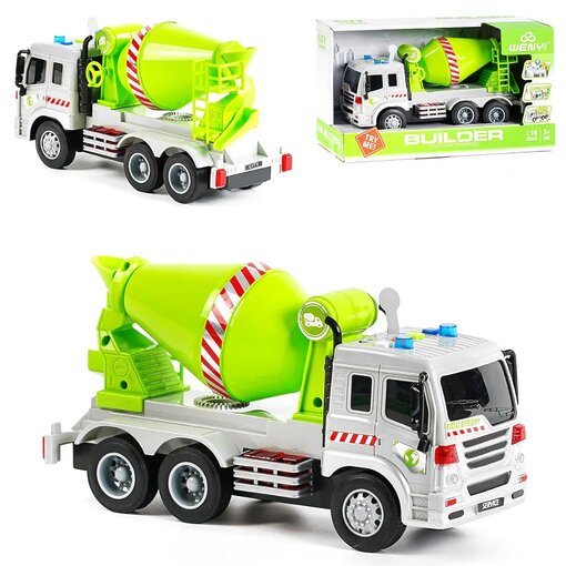 משאית מערבל בטון גדולה עם אורות וצלילים