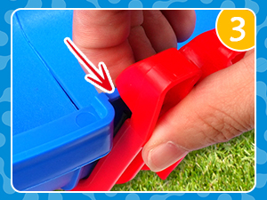 לחץ בחוזקה את אביזר תעלת המים הכחול לתוך אביזר הקישור האדום, והוא יכול פשוט להיתקע.