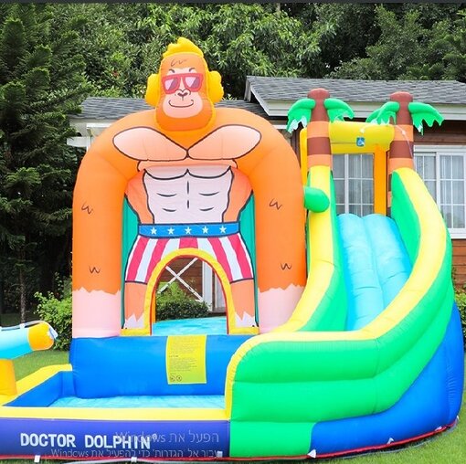מתנפח קוף גדול + משטח קפיצה + מגלשה + קיר טיפוס + ברכה קטנה Doctor Dolphin