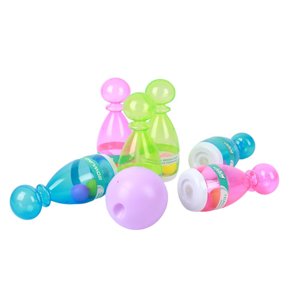 סט באולינג שקוף לילדים – 6 חיילים צבעוניים וכדור משחק