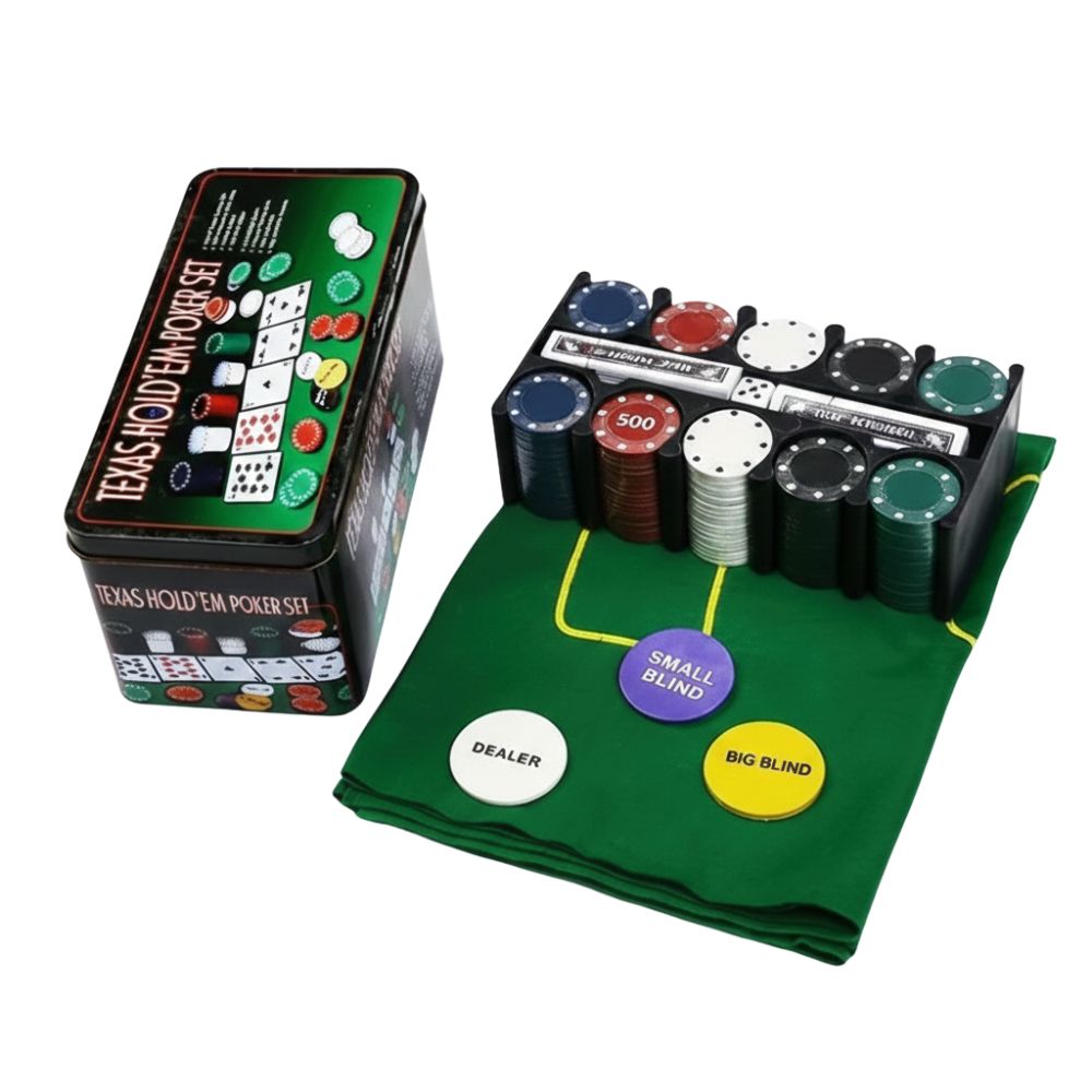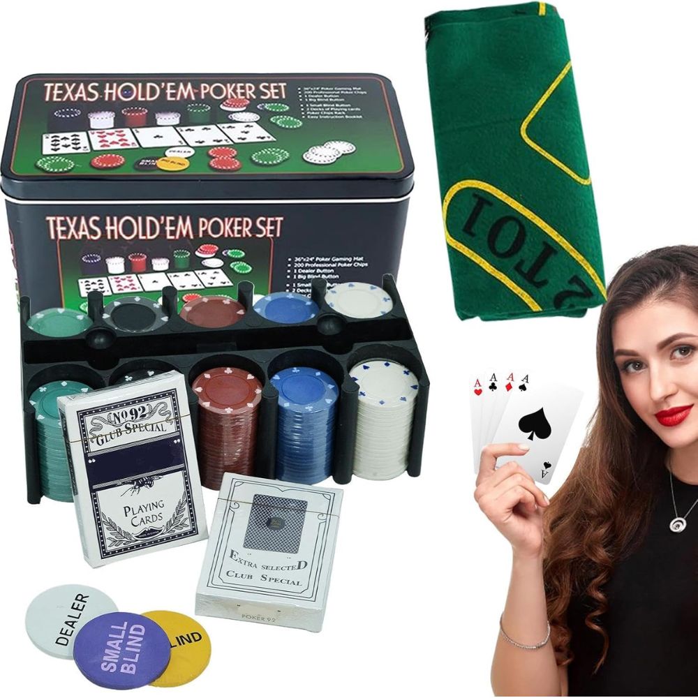 ערכת פוקר עם 200 זוטונים, קלפים ומשטח ירוק – משחק אסטרטגיה מקצועי