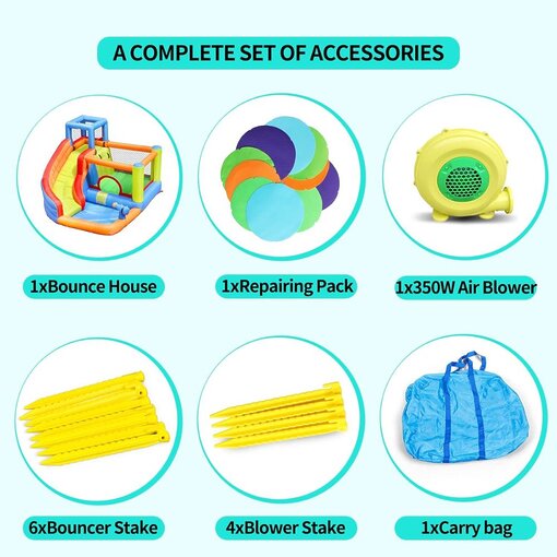 מתקן מים מתנפח לילדים עם מגלשה, אזור קפיצה ומפוח כלול. מתאים לעד 3 ילדים. מושלם לקיץ ולחצר הביתית!