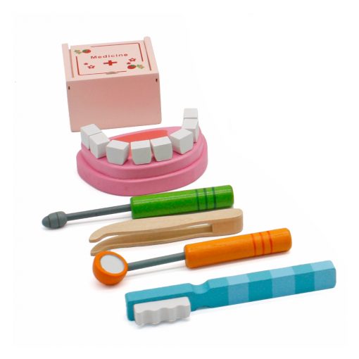 צעצוע ערכת רופא שיניים מעץ מלא לילדים, האביזרים מעץ מלא עם חיבורי מגנטים