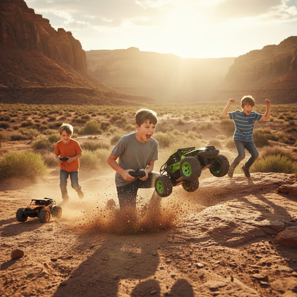• 🎮 שליטה חכמה (2.4GHz): שלט רחוק מתקדם המונע התנגשויות תדרים, כך שתוכלו להסיע מספר רכבים במקביל ללא הפרעה.