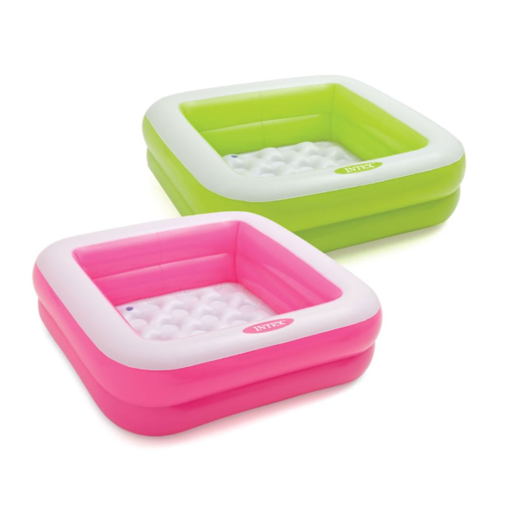 בריכה מרובעת לתינוקות מבית INTEX, בגודל 85x85x23 ס”מ, בצבעים ירוק או ורוד.