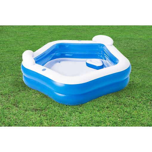 בריכת משפחה יוקרתית מבית Bestway הכוללת 2 מושבים מתנפחים, 2 משענות ראש ו-2 מחזיקי כוסות מובנים. מידות 213×206 ס”מ, עשויה PVC עמיד עם שסתום ניקוז מהיר. הפתרון המושלם למנוחה ובילוי משפחתי.