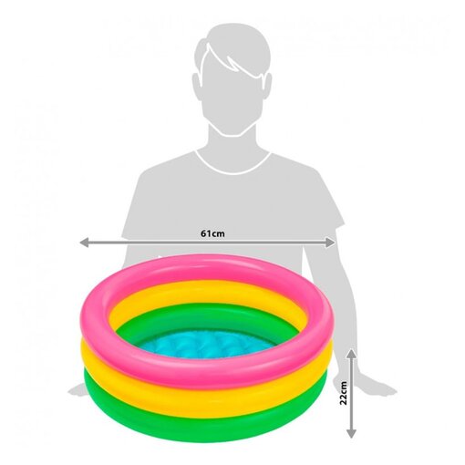 בקוטר של 61 ס”מ ובעומק 22 ס”מ, הבריכה מציעה 34 ליטר של מים, עם עומק מילוי של 15 ס”מ, כדי להבטיח חווית משחק נעימה ובטוחה.