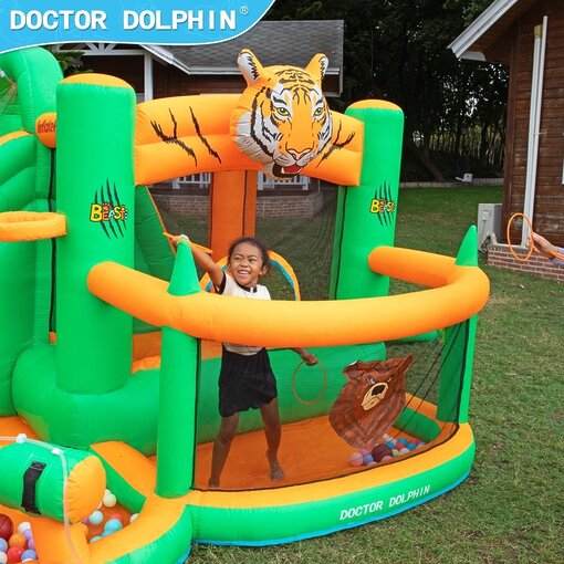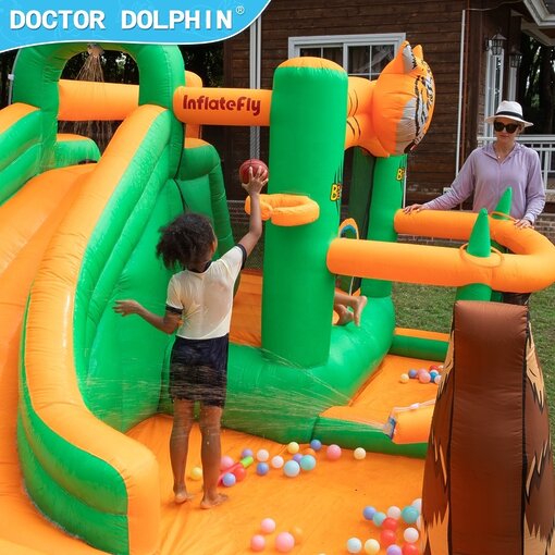 ג’ונגל של הרפתקאות: פארק מים מתנפח 5 ב-1 דגם 73075 עם מגלשה ותותח מים | Doctor Dolphin