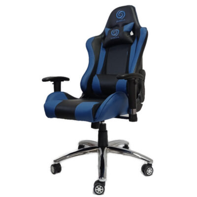 כיסא גיימינג כולל כריות תמיכה בגב התחתון ובצוואר, מושב ארגונומי בעל תמיכה צידית, ידיות מתכווננות ומנגנון נדנוד.