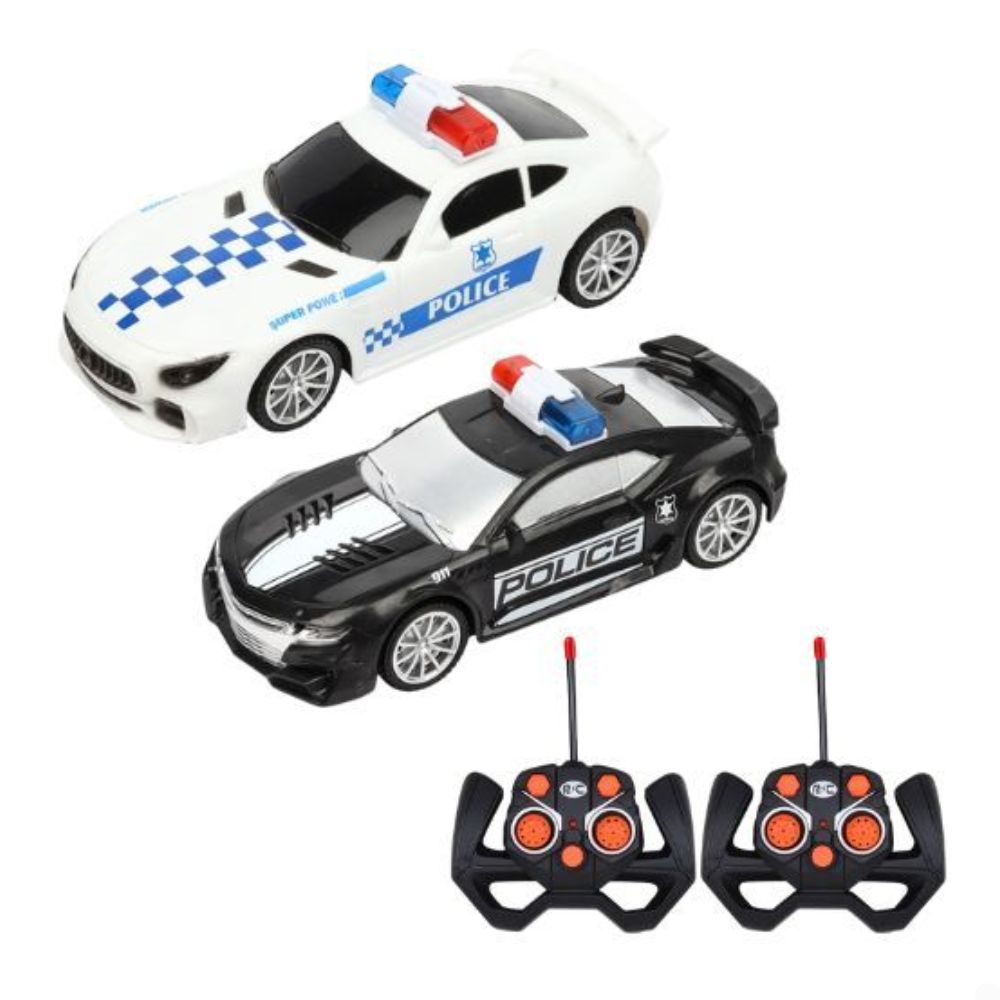 מארז כפול כיף כפול – צמד מכוניות משטרה על שלט MACHINA, לשליטה בכל כיוון, משחקי מרדפים ומירוצים לילדים מגיל 3+.