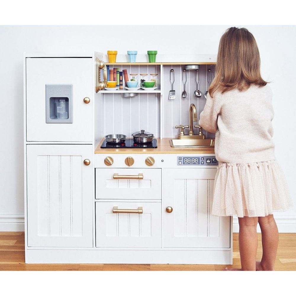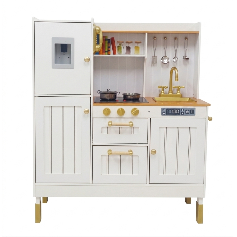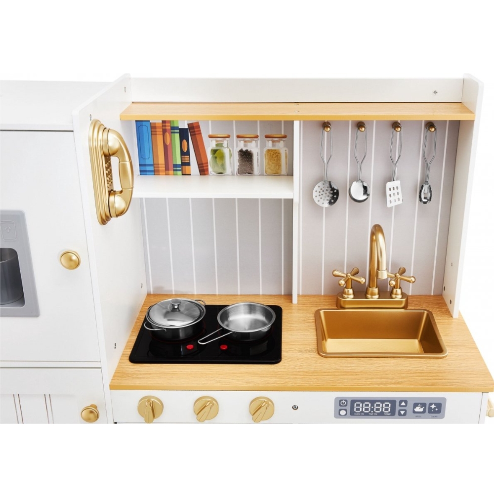 מטבח עץ אלקטרוני לילדים דגם נוגה – לבן וזהב יוקרתי