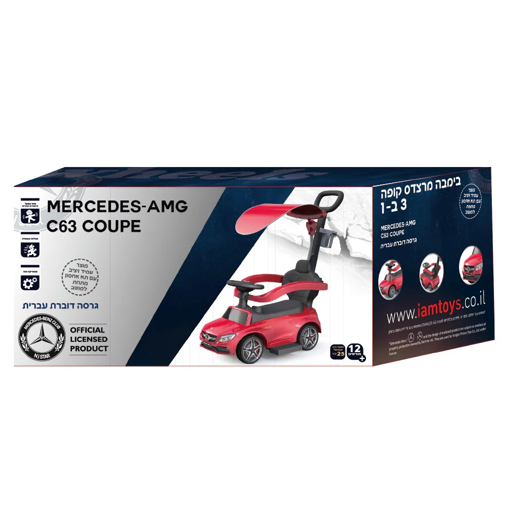 🏎️ בימבה מרצדס AMG C63 יוקרתית מבית I’AM TOYS! 🌟 דגם 3 ב-1 הכולל מוט דחיפה, הגה עם צלילים בעברית 🇮🇱, גגון ותא אחסון. בטיחותית, מעוצבת ומתאימה מגיל שנה עד 3. המתנה המושלמת! 🎁