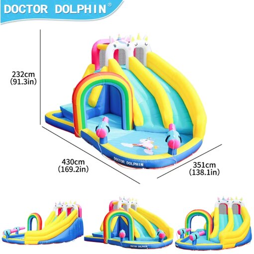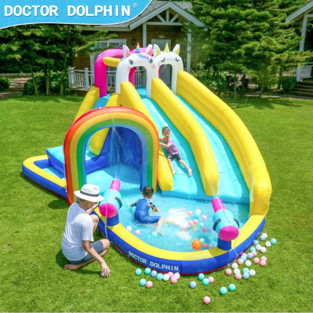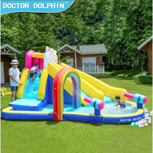 הקיץ הזה הולך להיות רטוב ומהנה במיוחד! מתקן המים המשולב של מותג האיכות DOCTOR DOLPHIN מציע שעות של פעילות גופנית ואתגרית לילדים.