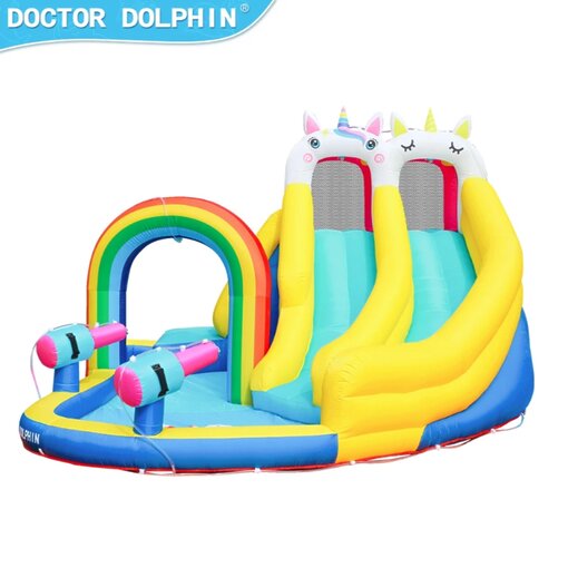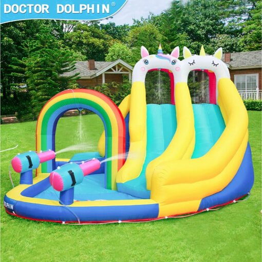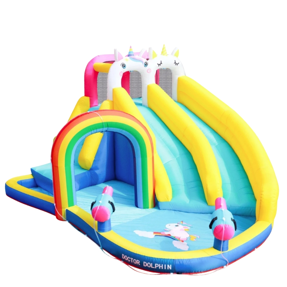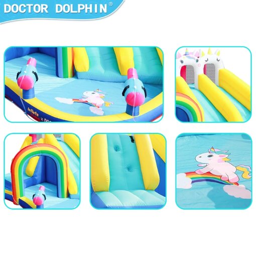 ממלכת חד הקרן: מתקן מים מתנפח עם מגלשות ותותחי מים | Doctor Dolphin 73041