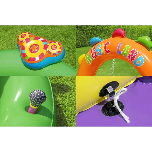 מרכז משחקי מים מוזיקלי – פארק מים עם מגלשה וכלי נגינה מתנפחים | Bestway Sing ‘n Splash 53117