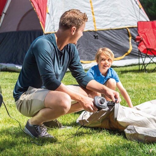 משאבת האוויר החשמלית מבית INTEX דגם  12V היא הבחירה המושלמת לניפוח מהיר ויעיל מחוץ לבית.