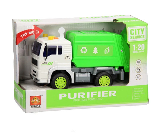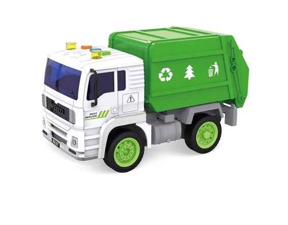 משאית אשפה בצבע ירוק עם אורות וצלילים לילדים