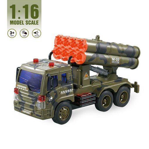 משאית טילים צבאית אינטראקטיבית – דגם עוצמתי עם אורות, צלילי קרב ומערכת שיגור