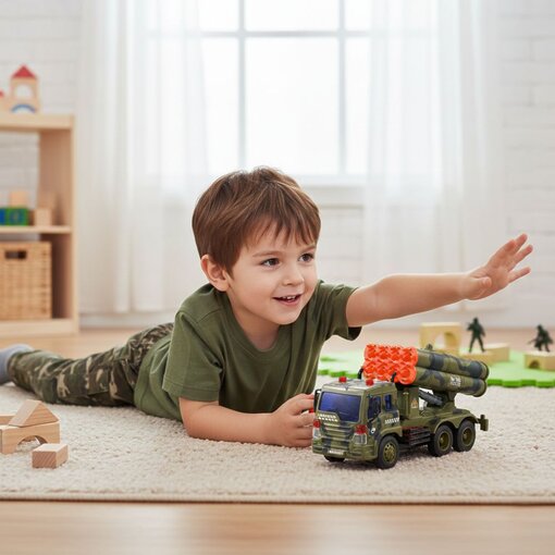 הכניסו את הילדים לעולם של אקשן ומשימות חילוץ עם משאית הטילים הצבאית החדשה שלנו. דגם זה משלב עיצוב ריאליסטי עם פונקציות אינטראקטיביות שהופכות כל משחק למשימה גורלית בשטח.