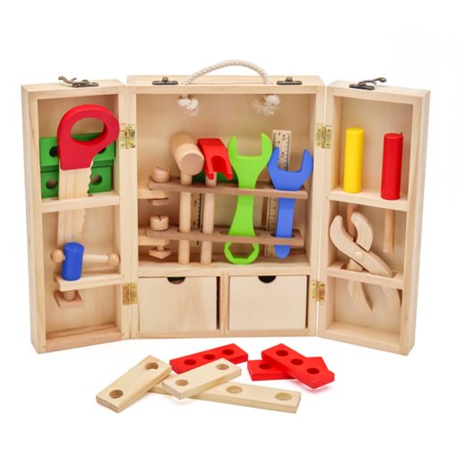 צעצוע לילדים ארגז כלי נגרות מעץ מלא כולל מגוון רחב של כלי עבודה