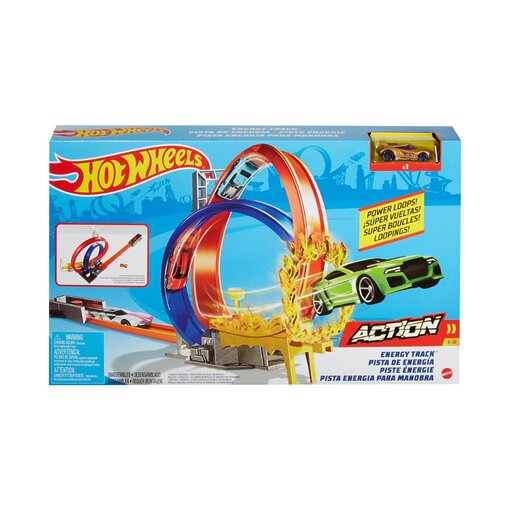 הציתו את הדמיון עם מסלול האנרגיה של Hot Wheels! שגרו את המכוניות דרך לולאה כפולה מאתגרת, עברו בטיסה דרך טבעת האש וטוסו לקו הסיום.