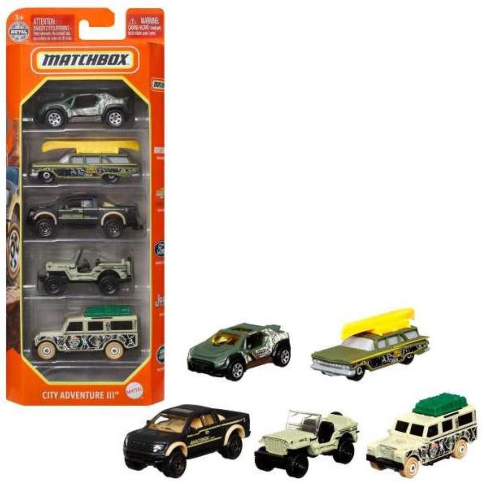 ערכת מאטץ’ בוקס עם 5 רכבים קלאסיים בקנה מידה 1:64, עם עיצובים מציאותיים ופרטים מרשימים.